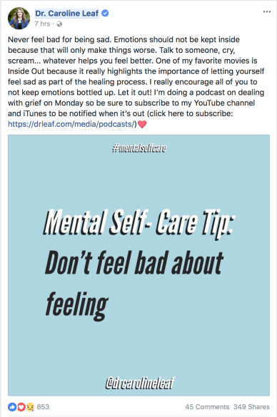 Dr Caroline Leaf, communication pathologist and self-titled cognitive neuroscientist, put this up on her social media pages this morning: