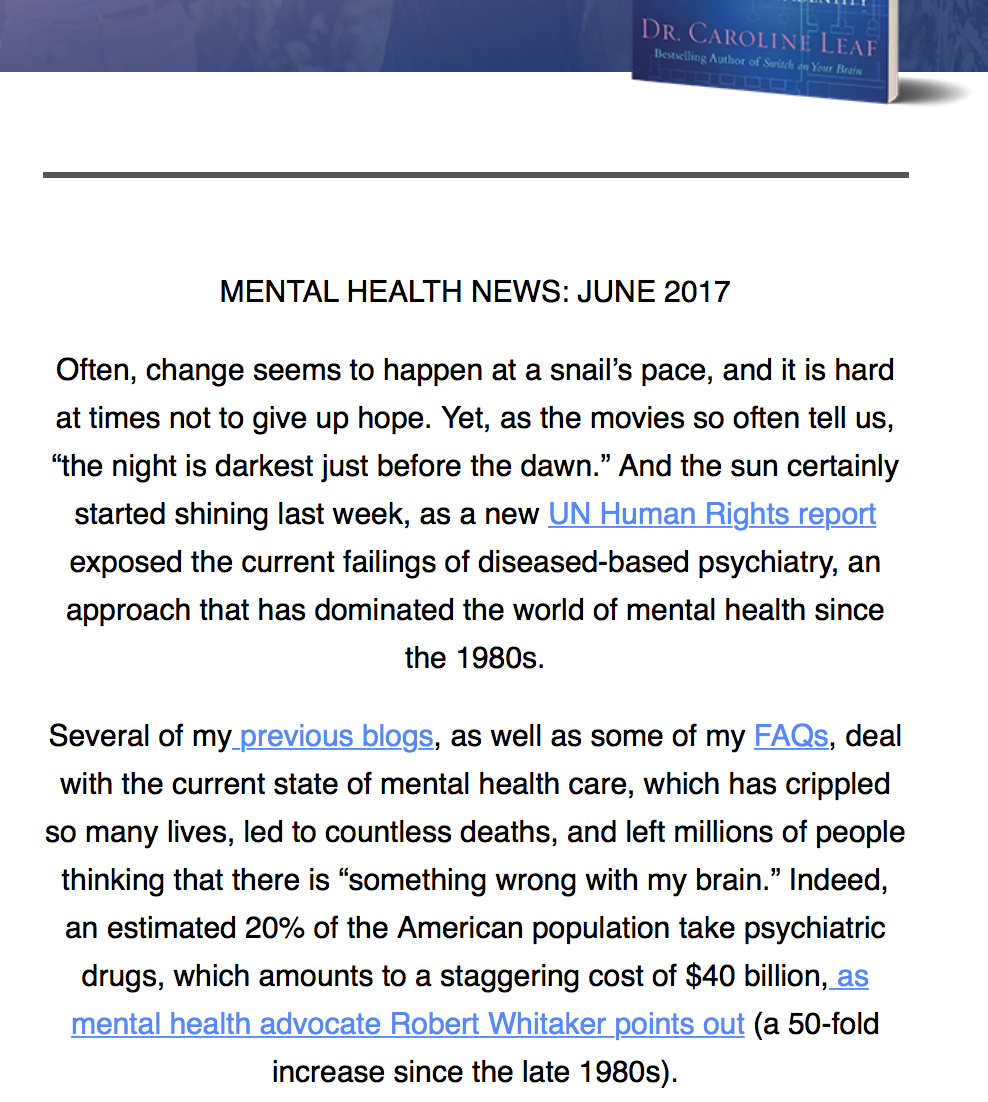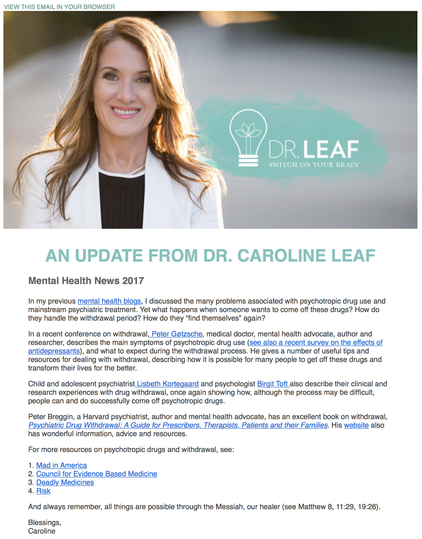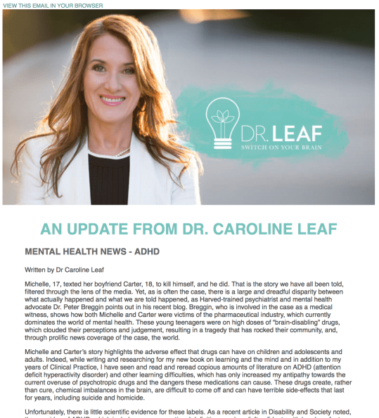 Dr Leaf also needs to stop exaggerating her “research and clinical experience”. She’s quick to point over every time she opens her mouth that she has decades of research and clinical experience, but such repeated and unjustified exaggeration is just another form of lying. Her research was an outdated and irrelevant PhD in the late 1990’s, based on a theory which she tested on school children. Her limited clinical experience was as a therapist for children with acquired brain injuries.
