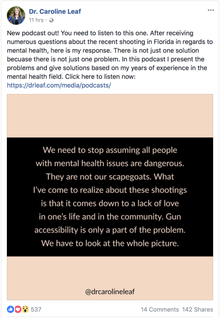 Dr Leaf’s credibility on the subject quickly evaporates with her introductory caution: