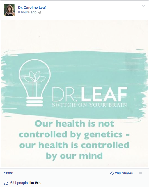 I understand that you are both busy, but I believe that I have documented a number of observations, backed by recent peer-reviewed scientific literature, which directly contradict Dr Leaf’s teaching. I have not had a chance to touch on many, many other points of disagreement.