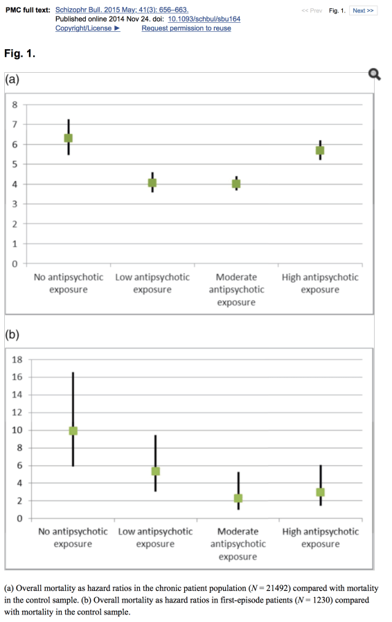 Torniainen M, Mittendorfer-Rutz E, Tanskanen A, et al. Antipsychotic treatment and mortality in schizophrenia. Schizophrenia bulletin 2015 May;41(3):656-63.